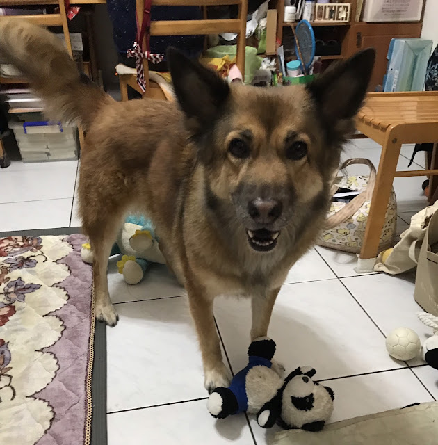 阿茶的毛比較特別的地方是雖然有混到狼犬(德國牧羊犬)的血統,但是毛並不粗硬,反而又細又長,所以在保養上要格外注意(台北潮濕的天氣容易結成團或者發霉有異味),但在用了Sipet洗毛精後,其實不需要太頻繁的梳理,毛髮就有很自然的柔順感,超級美麗~