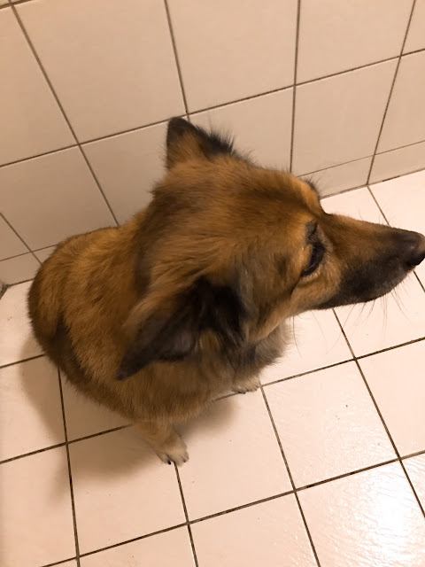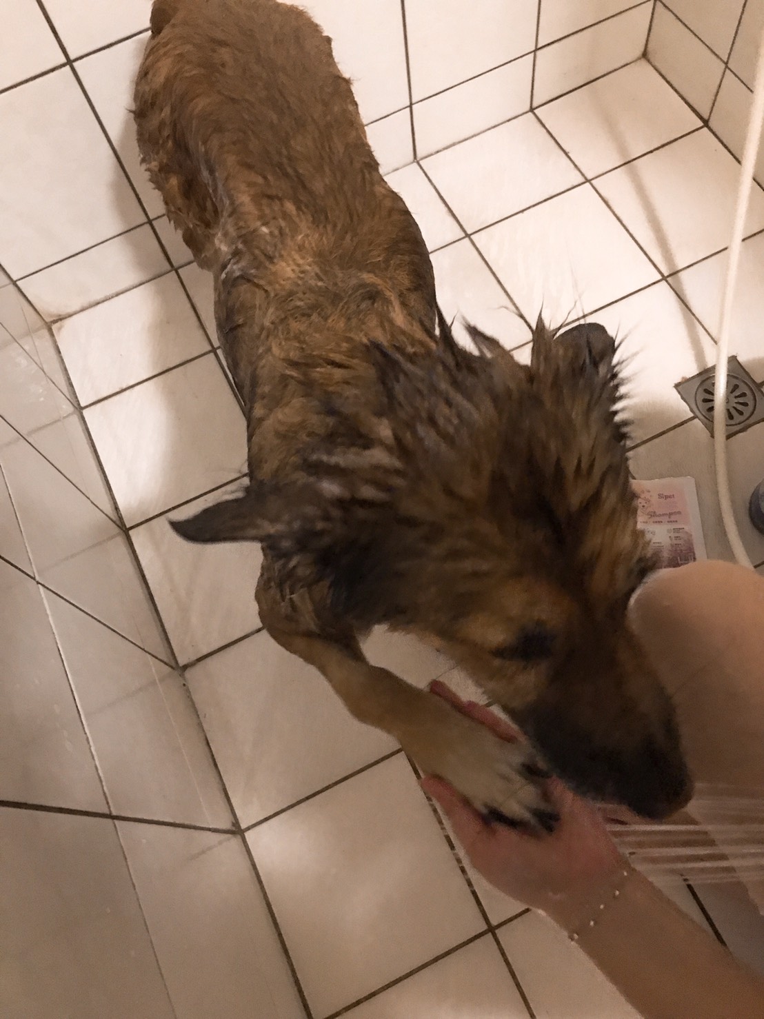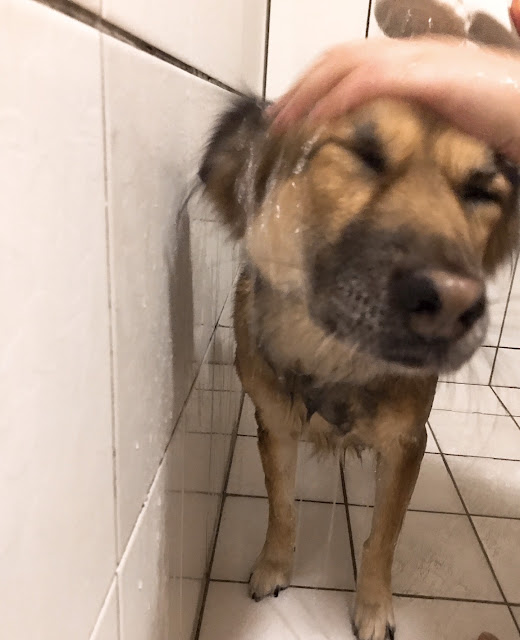 現在阿茶已經洗澡洗成老司機了,洗頭的時候會很自覺地閉上眼,前陣子洗澡時還很笨的張開眼睛洗頭XD